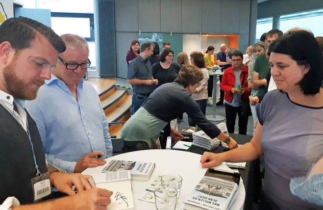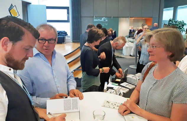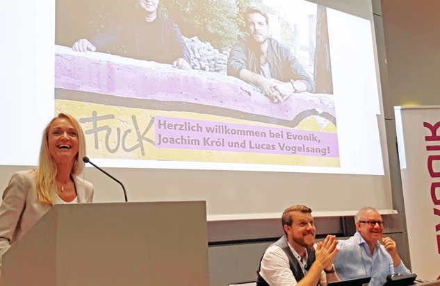 „Mittlerweile ist unsere Lesereihe im Industriepark eine schöne Tradition geworden. So unterschiedlich bislang auch die Inhalte waren, von einem Taunus-Krimi über die wahre Geschichte eines Genies bis hin zu Reportagen zu Heimat und Migration“, begrüßte Evonik-Standortleiterin Kerstin Oberhaus die mehr als 150 Gäste im Plenarsaal des Industrieparks Wolfgang.