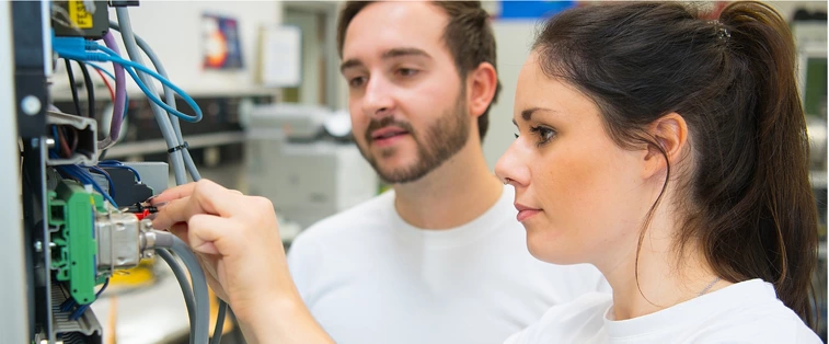 Fragt man Lea Debes und Niclas Beier nach ihrem Ausbildungsberuf, schwingt in ihren Stimmen ein gewisser Stolz mit. „Elektroniker für Automatisierungstechnik“ – das hat schon was. Aber was lernen die jungen Auszubildenden eigentlich im Industriepark Wolfgang?