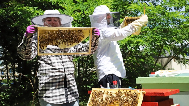 „Wir vergewissern uns dann, ob es den Tieren gut geht. Und ob es Anzeichen gibt, dass sie schwärmen wollen. Das erkennt man daran, dass das Volk neue Königinnen produziert. Die alte Königin würde dann ausschwärmen und nähme die meisten Arbeiterinnen mit“, erläutert Jasmin Mankiewicz. Das gelte es zu verhindern, zum Beispiel indem man den Bienen mehr Platz im Bienenstock gibt.