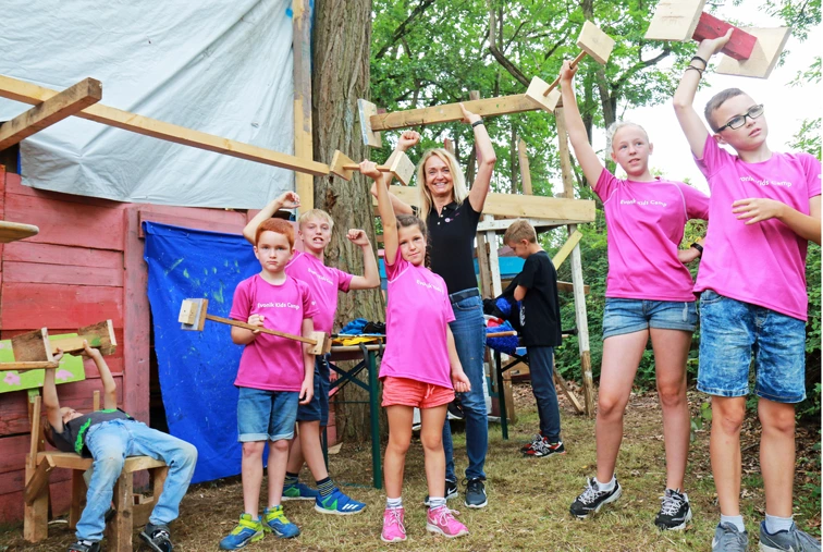 Das Ferienprogramm, das im Rahmen der Konzerninitiative well@work stattfindet, dauerte in diesem Jahr insgesamt vier Wochen. Zwei Wochen waren die Kids auf dem Sportgelände „In den Tannen“ mit dem Bauen ihres Olymps beschäftigt. In den anderen beiden Wochen unternahmen die Kinder Ausflüge – zum Beispiel in das Puppentheater Steinau, das Mit-Mach-Museum in Schloss Philippsruh, auf den Hoherodskopf oder im Kanu auf der Kinzig.
