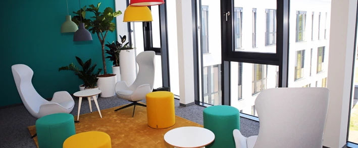 Moderne Technik, Foren, Sitzecken und großzügig gestaltete Arbeits- und Kommunikationsflächen – aus allen Blickwinkeln blitzen Kreativität und innovative Raumkonzepte, die an die Start-up-Szene erinnern: Rund 300 IT-Mitarbeiter, die bislang hauptsächlich in Frankfurt gearbeitet hatten, bezogen im Frühjahr das neue IT-Gebäude, das Immobilien-Investor Dietz für Evonik gebaut hat. Das Spezialchemieunternehmen hat sich vor einigen Jahren entschieden, den reinen IT-Standort Frankfurt aufzugeben und die Aktivitäten nach Hanau zu verlagern.