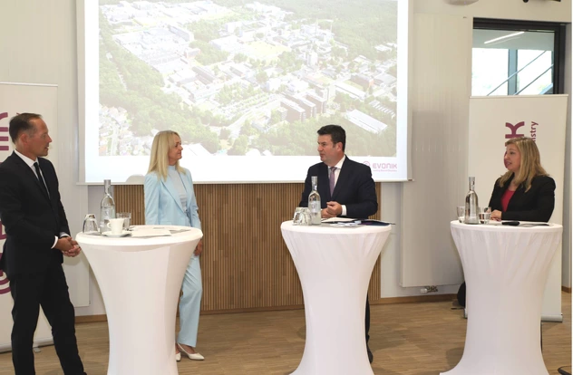 Hubertus Heil, Bundesminister für Arbeit und Soziales, tauschte sich im Industriepark Wolfgang mit Evonik Personalvorstand und Arbeitsdirektor Thomas Wessel und weiteren Expertinnen und Experten des Unternehmens über die aktuellen Herausforderungen der Chemieindustrie aus. Im Fokus standen der Brückenstrompreis, schnellere Planungs- und Genehmigungsverfahren sowie die Beschränkung der Stoffgruppe PFAS.