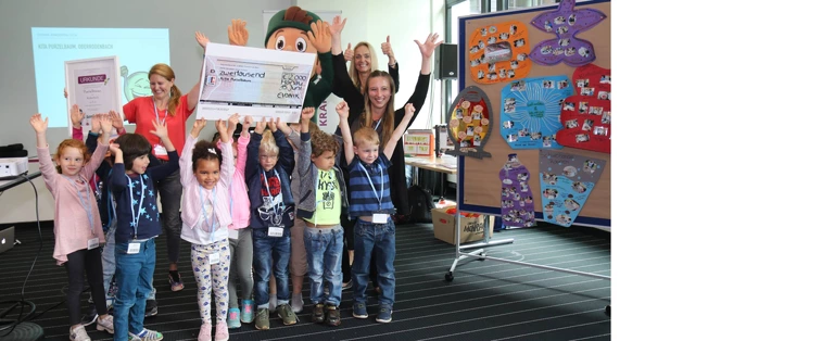 Der erste Preis ging an die Kita Purzelbaum aus Rodenbach. Mitte Juni stieg im Industriepark Wolfgang die große Abschlussparty der Evonik-Kinderuni. Über 50 Kinder aus den fünf Sieger-Kindergärten mischten einen ganzen Tag lang den Industriepark auf.