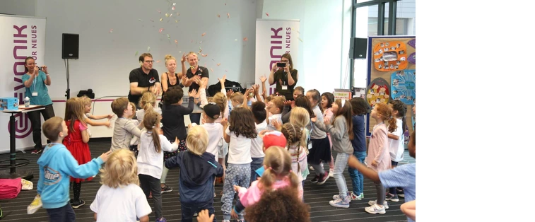 Mitte Juni stieg im Industriepark Wolfgang die große Abschlussparty der Evonik-Kinderuni. Über 50 Kinder aus den fünf Sieger-Kindergärten mischten einen ganzen Tag lang den Industriepark auf.