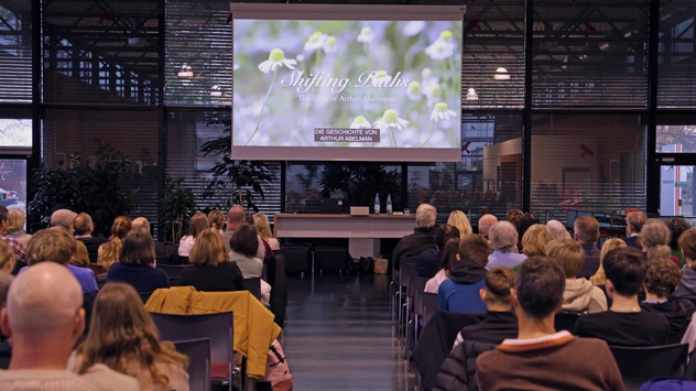 Dr. Charles Abelmann, amerikanischer Dokumentarfilmer und Sohn sowie Enkel von Zeitzeugen, präsentierte seinen Film „Shifting Paths“ („Sich verändernde Pfade“) – eine sehr persönliche Dokumentation über die dramatische Geschichte seiner jüdischen Familie.