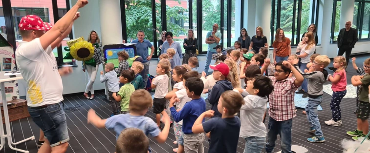 Und Spaß wurde an diesem Tag großgeschrieben. Es wurde getanzt, gesungen, gelacht und natürlich auch ein bisschen experimentiert. Industriepark-Kollege und Chemiker Frank Menzel zeigte den staunenden Kindern, wie mickeymausig sich die Stimmen anhören, wenn man Helium inhaliert und einige Young Spirit-Paten verblüfften den Forschernachwuchs mit einem widerspenstigen Ballon, der sich nicht aufblasen ließ.